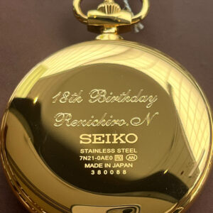 小さなお時計のため、刻印文字数が限られています。伝えたい言葉を最小限に収められていますね、かわいいです。