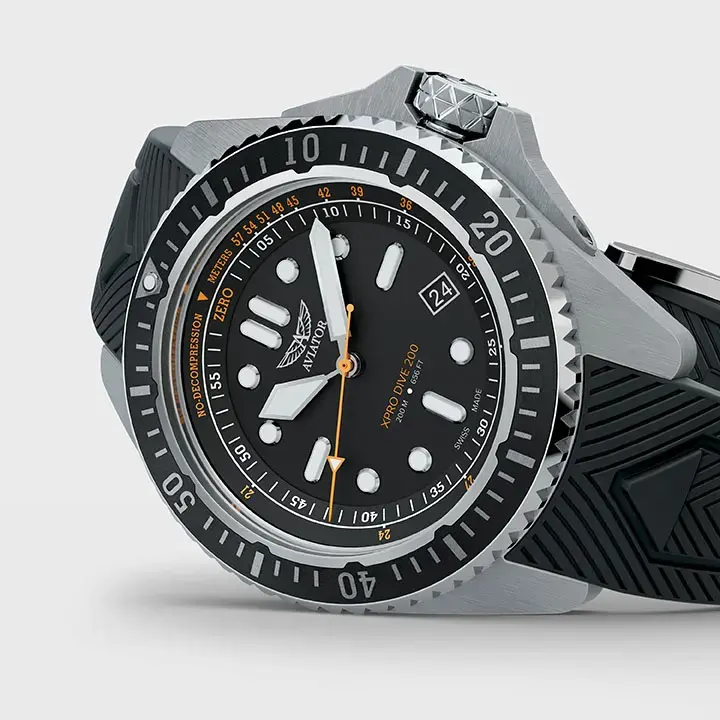 AVIATOR XPRO DIVE 200は、海と空という二つの世界を自在に行き来するために生まれたデュアル・エンバイロメント・ツールウォッチです。