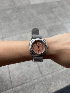 ですが、今回ご紹介する M.R.M.W. Cushion watch California dial は、そのどちらにも当てはまりません。