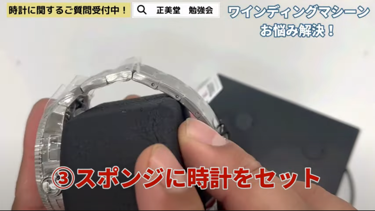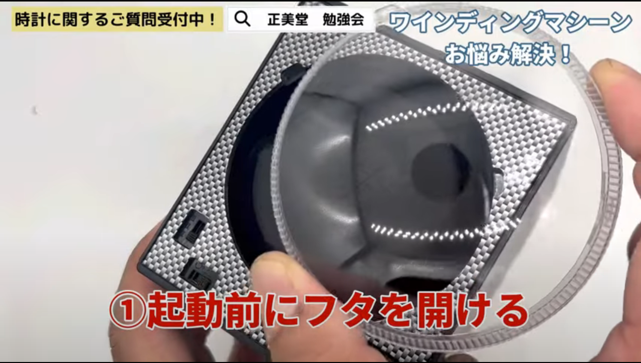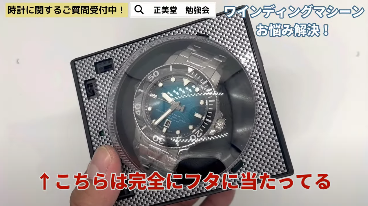 ワインダーを正確に置いた状態で時計がズレ落ちないように気をつけていただければなというところです。